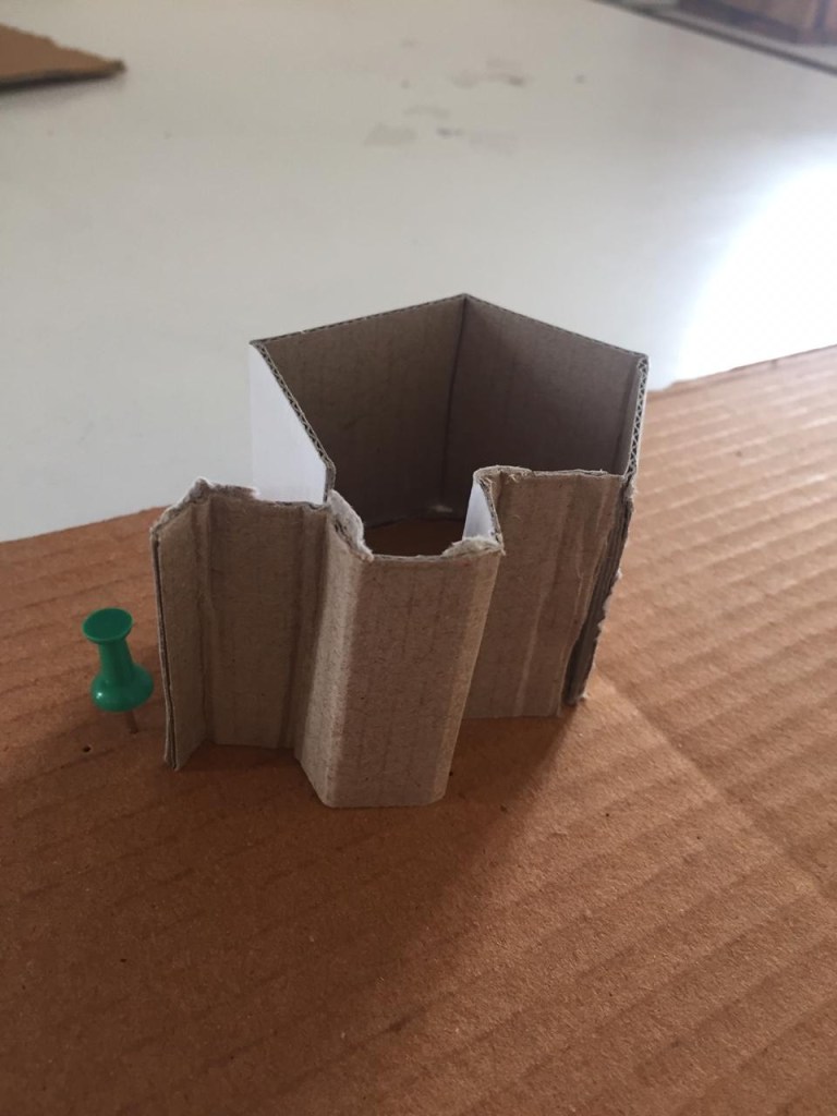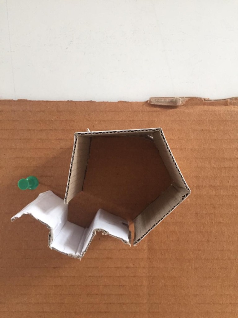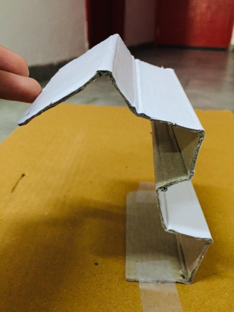 A space to exist should not be confused by what is called an enclosed space. Many Spaces can be created by just a single wall depending on how one designs the wall. For example : spaces can be created by folding a wall multiple times into one’s desired way. Somewhat similar I learnt in my class, I used a cardboard rectangular piece in the ratio 1:4 and used it as a wall. Then I started folding it and I just folded it into five folds without even realizing how the spaces were building side by side. This lead to the formation of three different spaces then I tried to place a pentagonal space which was again made by the folding of cardboard sheet.