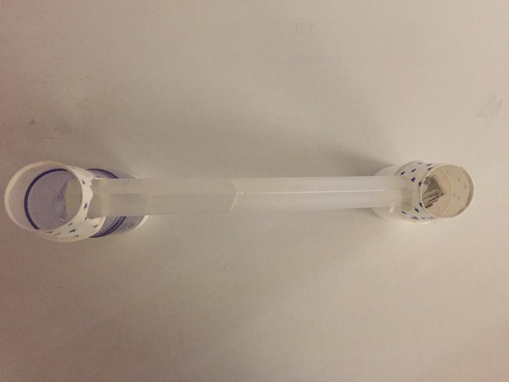 4. Connecting two platforms: Retaining to that very same emotion, now we had to make two different platforms with the objects and connect them. So what I did was, I made two separate platforms and covered them with the paper cups (opened from both the ends) which made the platforms look more claustrophobic due to the very high height of the walls of the platform. I connected both of them with the translucent track which felt more controlling and had a single way that too to the other platform.